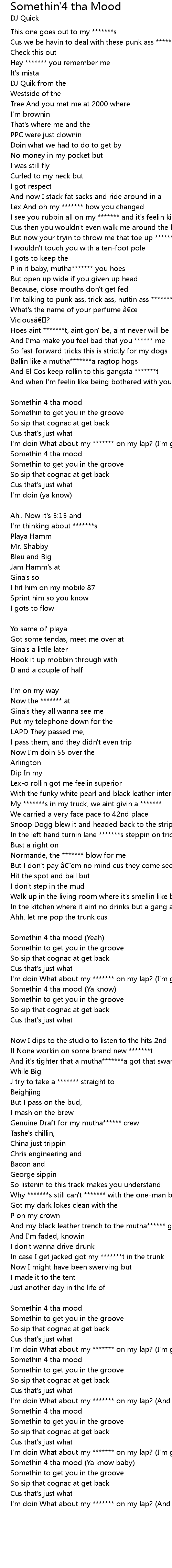 | I'm doin What about my ******* on my lap? [DJ Quik] | |
