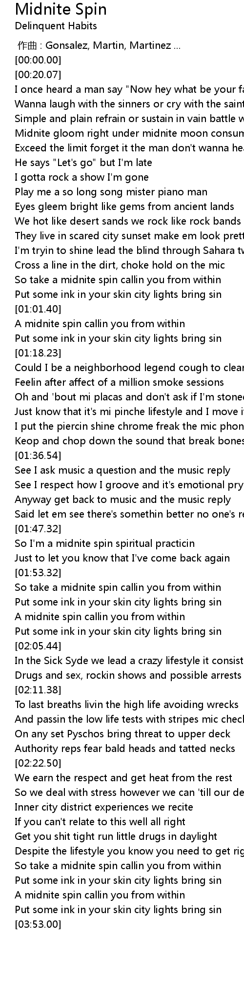 | [01:49.04] | So I' m a midnite spin spiritual practicin |