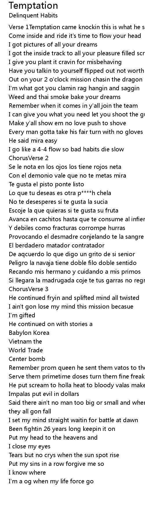 Verse 1Temptation came knockin this is what he said |