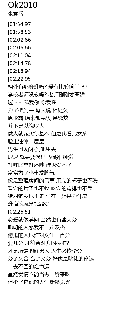| [01:09.92] | 学校老师没教吗? 老师刚刚才离婚 |