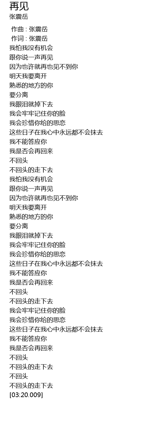 | [00:00.00] | 作曲 : 张震岳 |