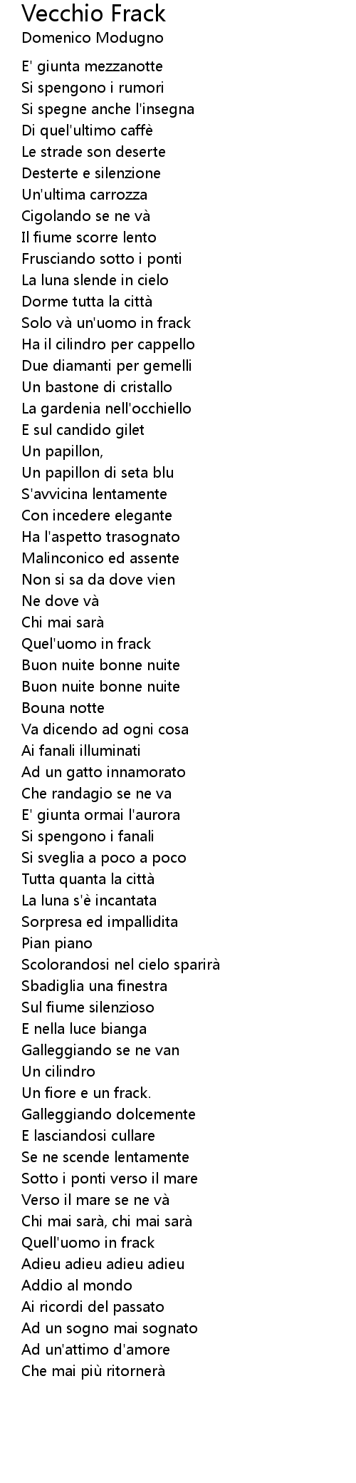 | Song | Vecchio Frack |