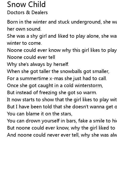 But noone could ever know, why the girl liked to play with snow |