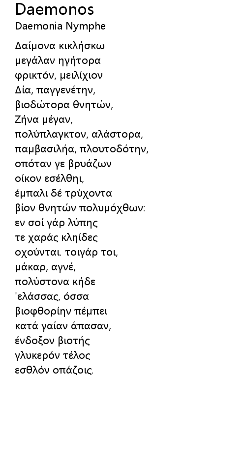 | Δαίμονα κικλήσκω | |