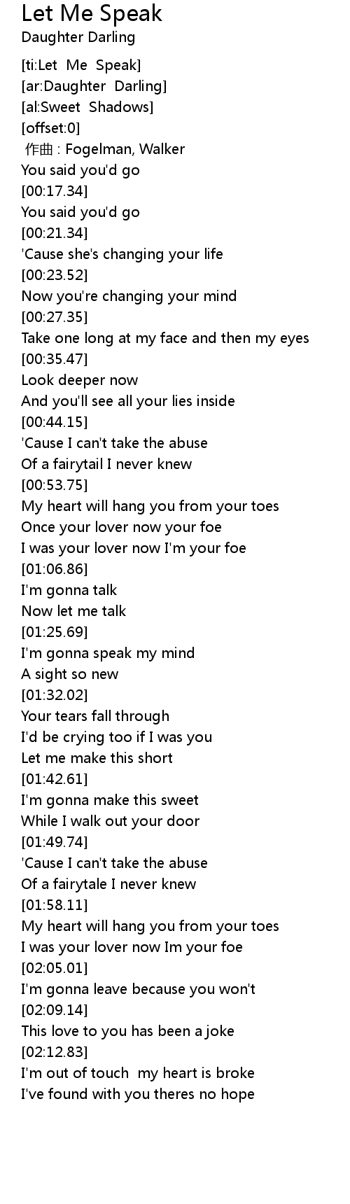 | [00:00.00] | zuò qǔ : Fogelman, Walker |