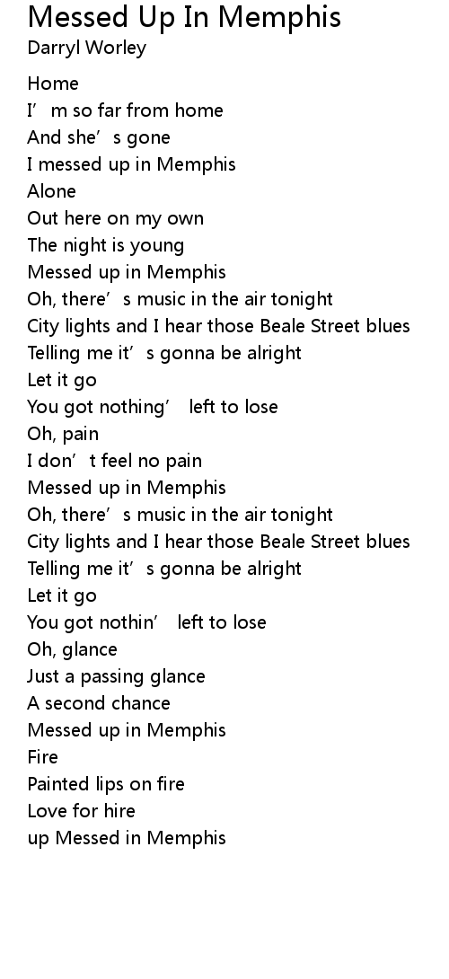 | [00:32.69] | I messed up in Memphis |