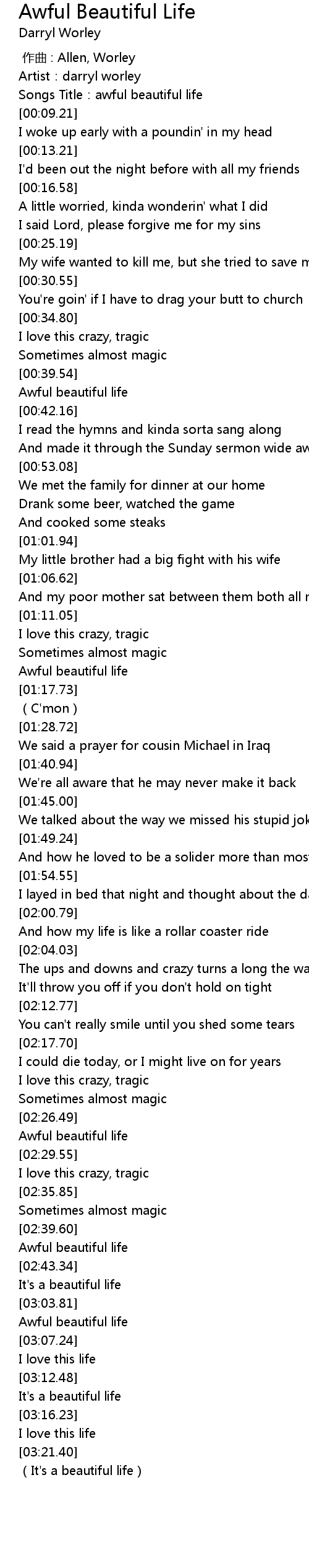 | [00:40.10] | Awful beautiful life |