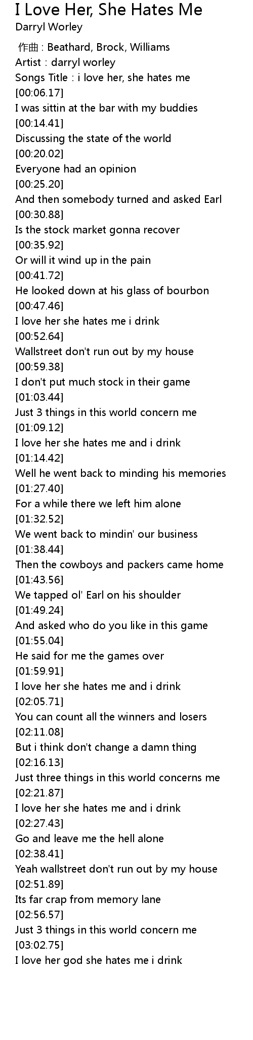 | [00:02.61] | Songs Title: i love her, she hates me |