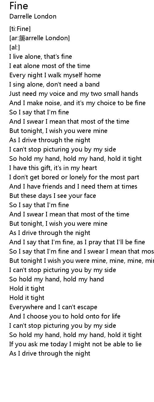 | [02:01] | And I say that I'm fine, as I pray that I'll be fine |