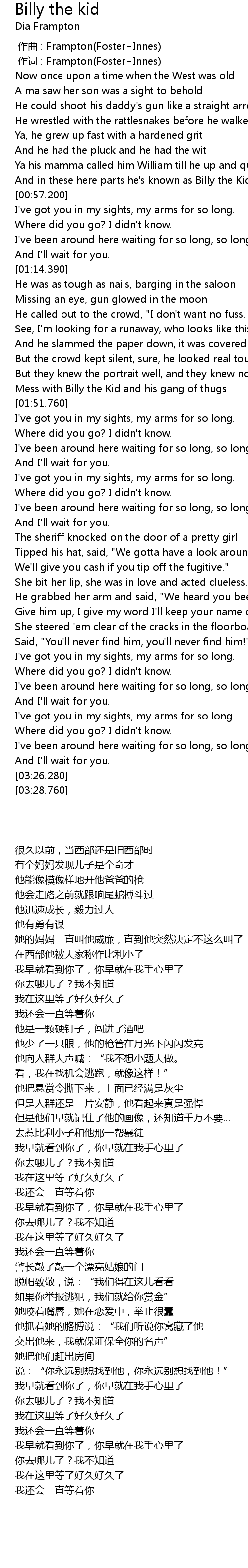 | [00:53.420] | And in these here parts he' s known as Billy the Kid |