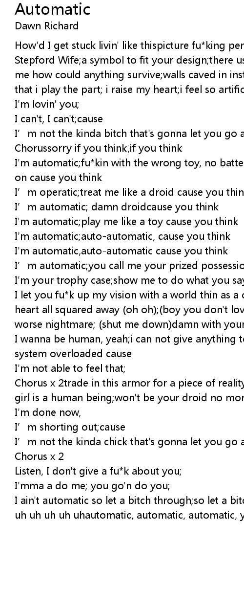 | I'm automatic;fu*kin with the wrong toy, no batteries included;tryin' to turn me on cause you think | |