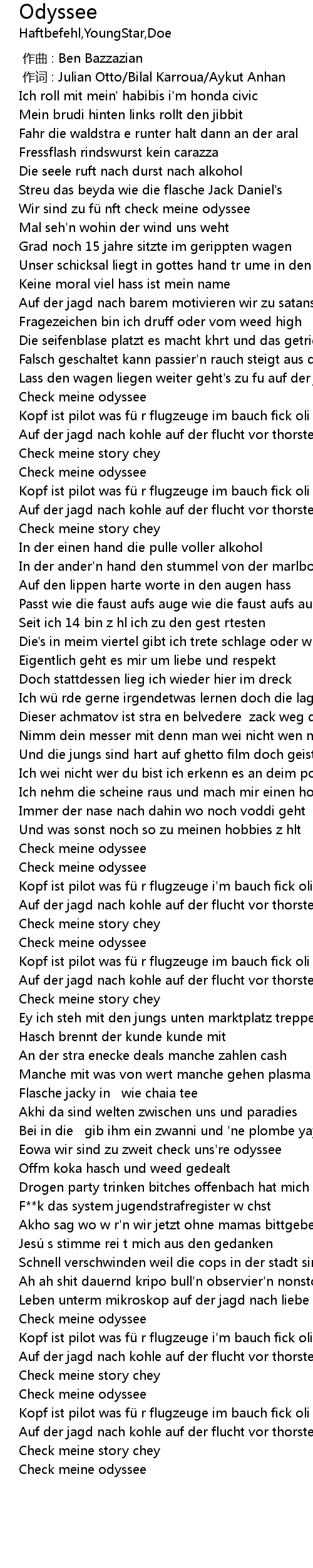 | [00:29.27] | Wir sind zu fü nft check meine odyssee |