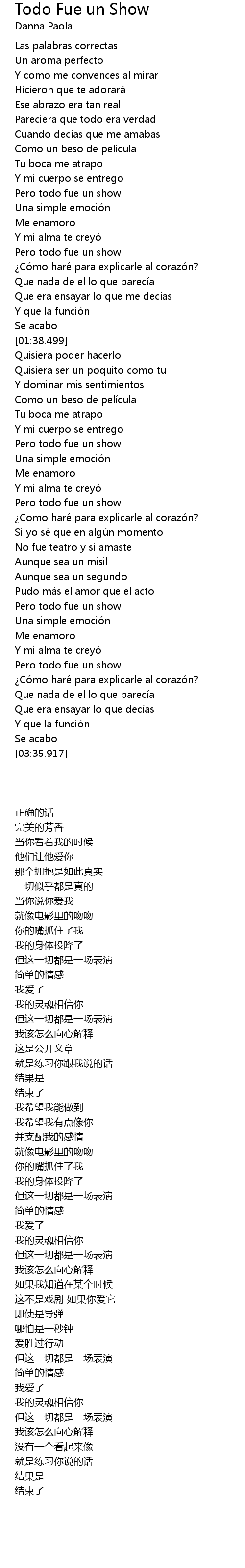 | [01:25.309] | Que era ensayar lo que me deci as |