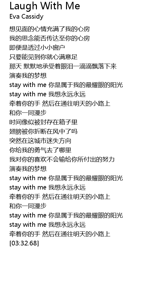 | [03:15.87] | stay with me wǒ xiǎng yǒng yuǎn yǒng yuǎn |