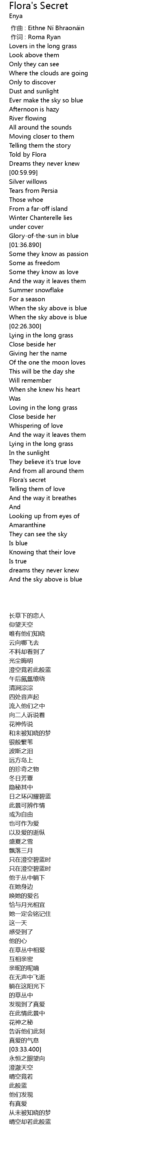 | [03:24.480] | Flora' s secret |