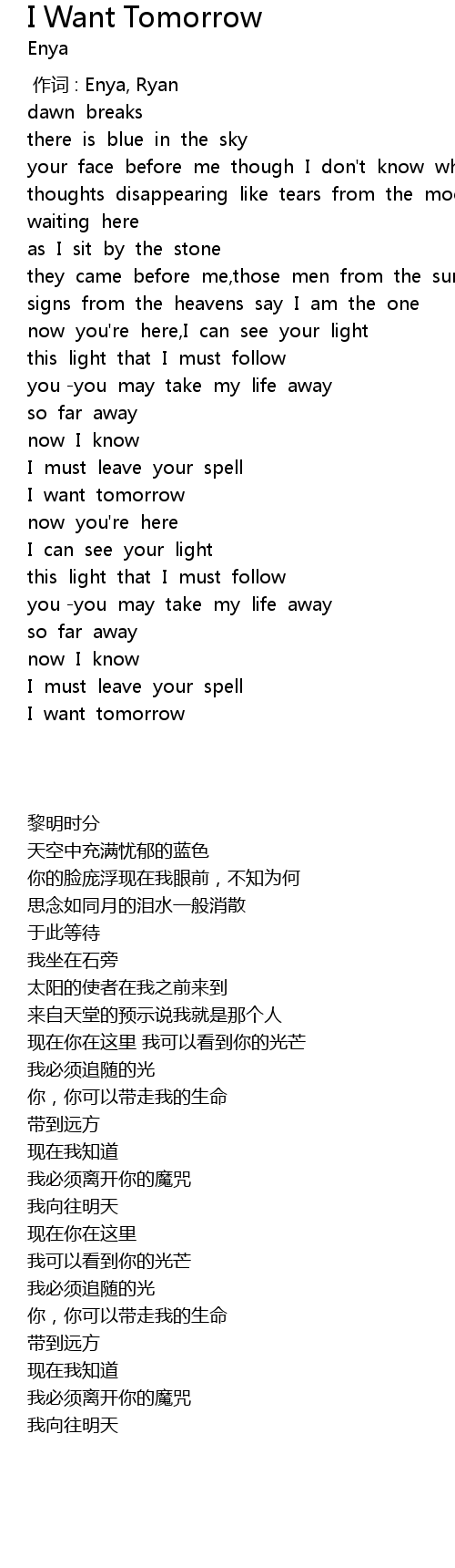 | [00:00.00] | zuò cí : Enya, Ryan |