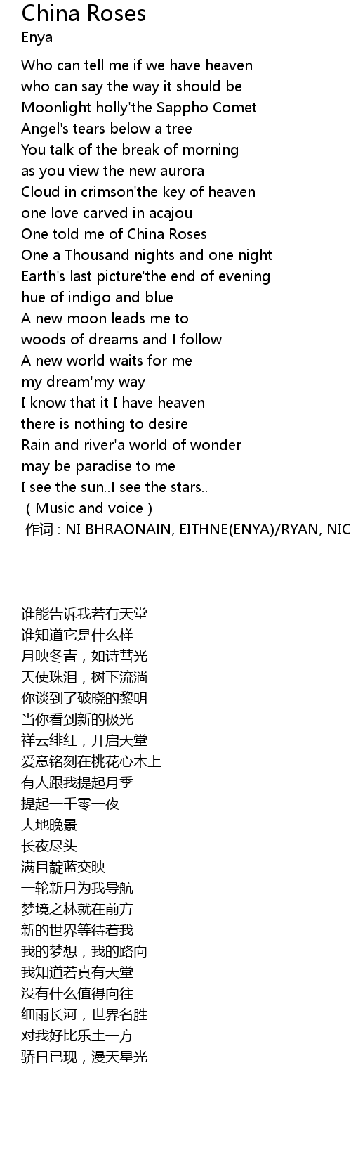 | [00:00.00] | 作词 : NI BHRAONAIN, EITHNE(ENYA)/RYAN, NICKY/RYAN, ROMA |