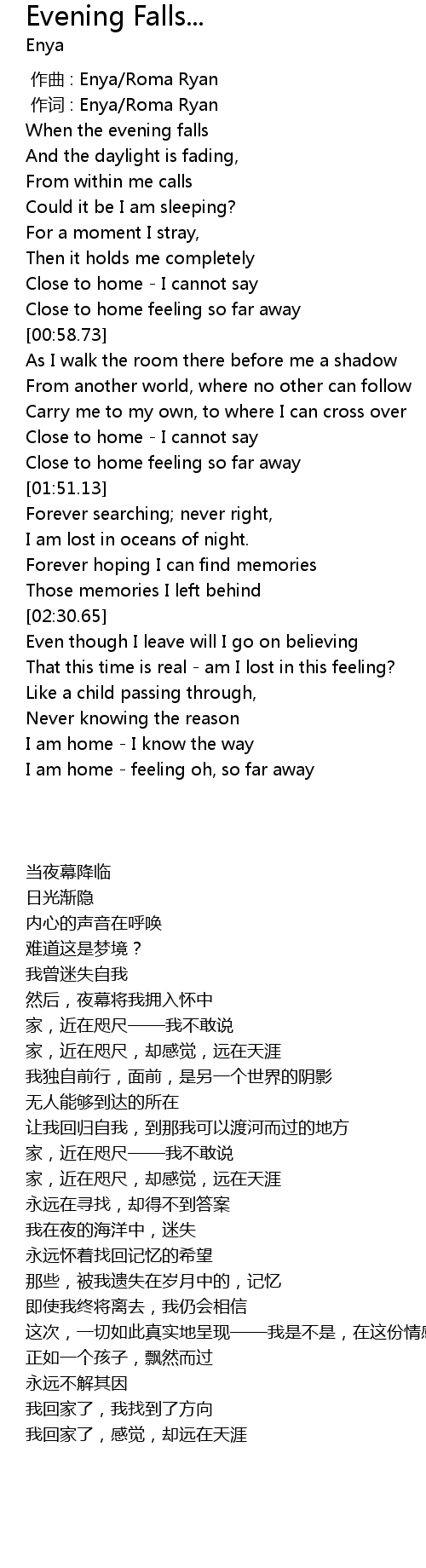 | [00:01.00] | 作词 : Enya/Roma Ryan |