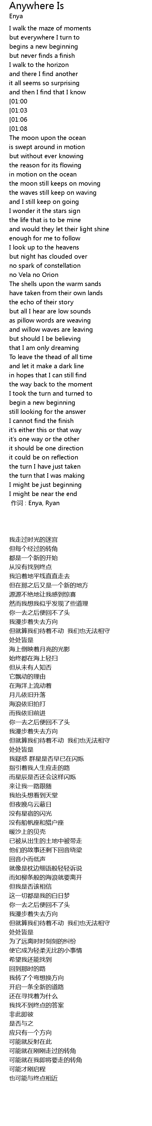 | [00:00.00] | zuò cí : Enya, Ryan |