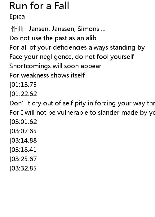| [04:09.17][03:32.85][02:02.16] | And pride will have it’s fall at last |