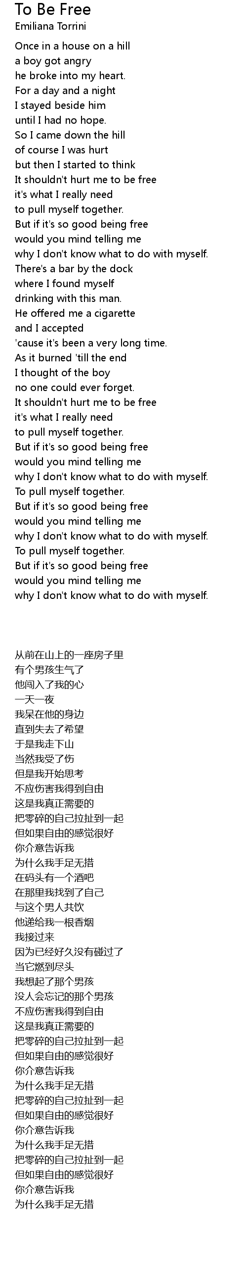 It shouldn't hurt me to be free |
