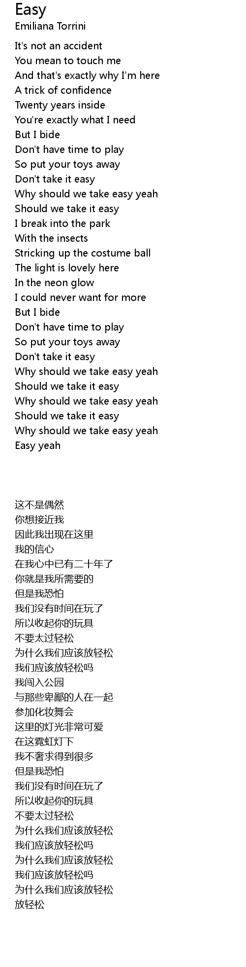Why should we take easy yeah |