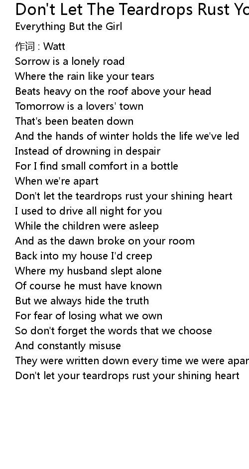 | Don' t let your teardrops rust your shining heart |