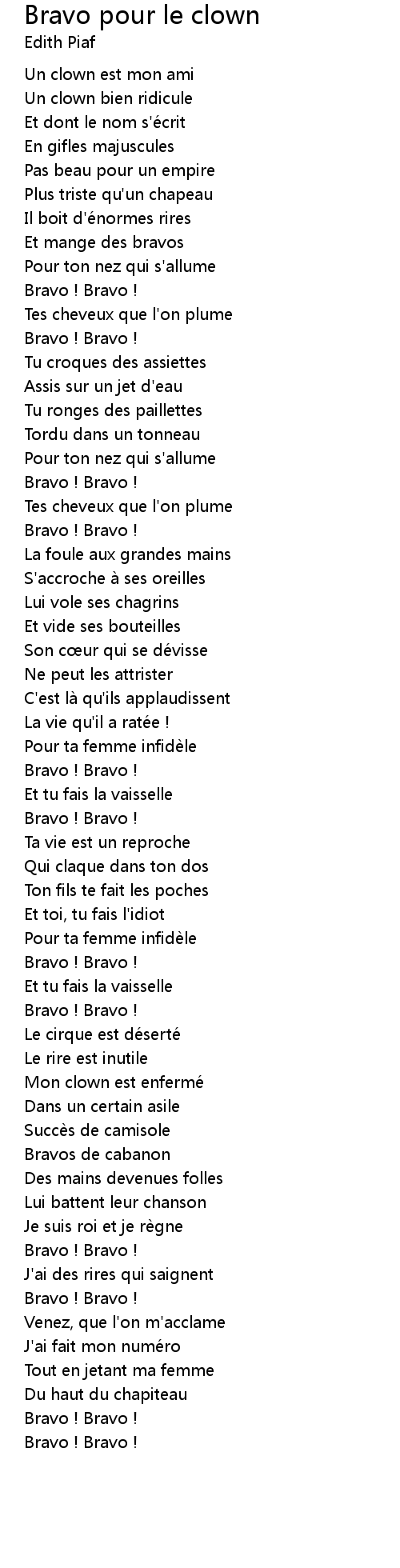 | Song | Bravo pour le clown |