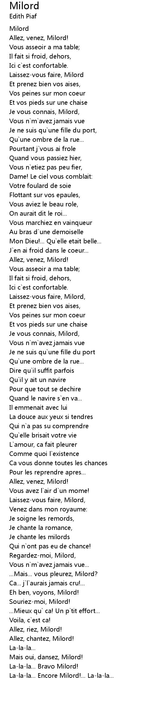 La-la-la... Encore Milord!... La-la-la... |