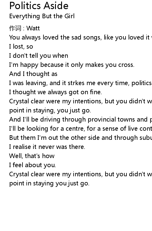 | Crystal clear were my intentions, but you didn' t want to know, when there' s no point in staying you just go. |