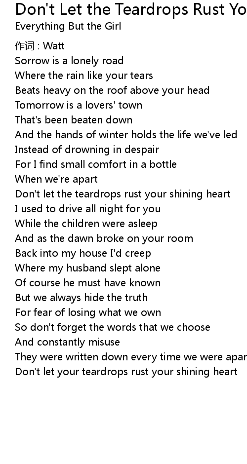 | Song | Don't Let the Teardrops Rust Your Shining Heart |