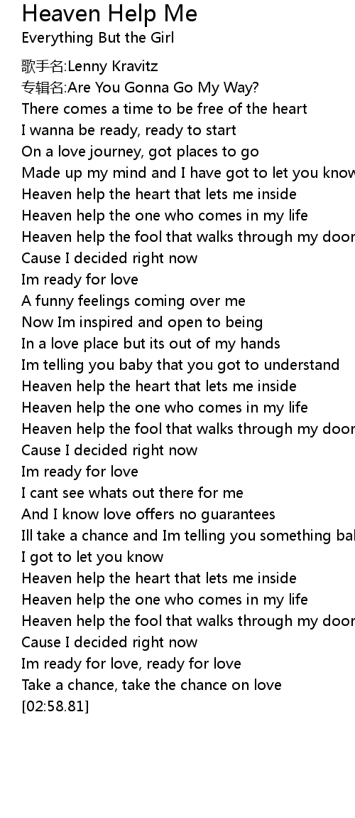 | [02:22.00] | Heaven help the heart that lets me inside |