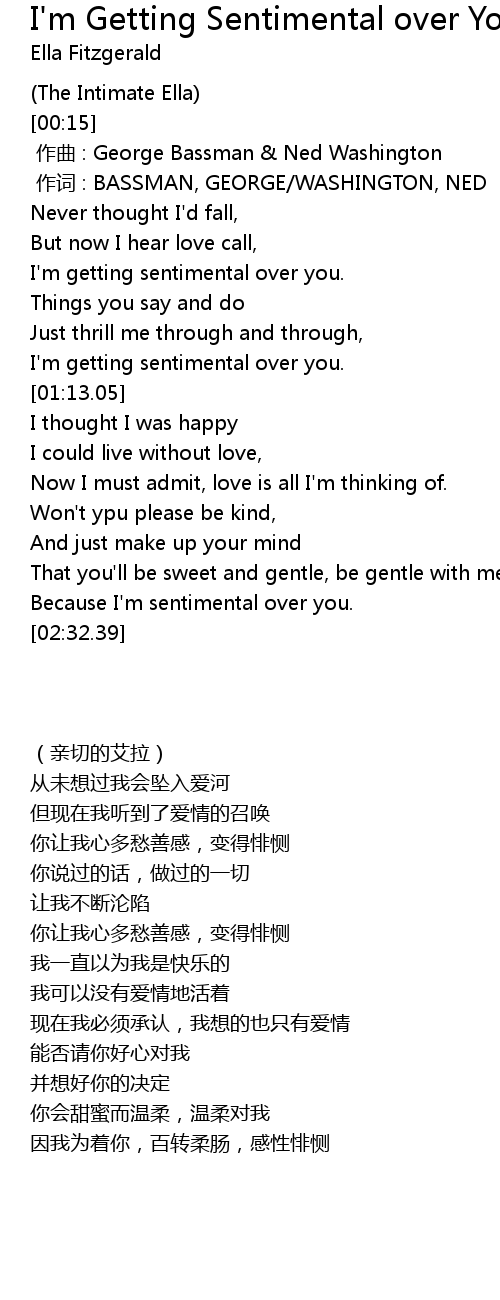 | [00:58.86] | I' m getting sentimental over you. |