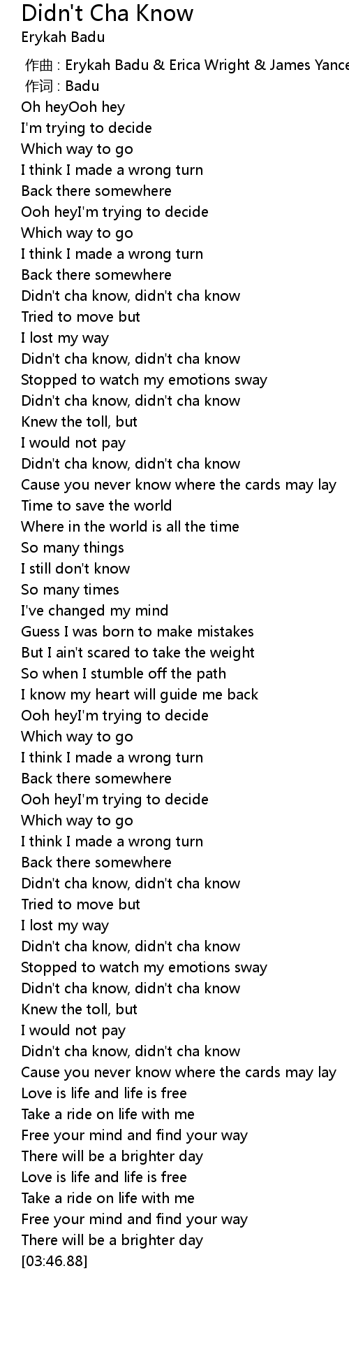 | [03:11.12] | Didn't cha know, didn't cha know |