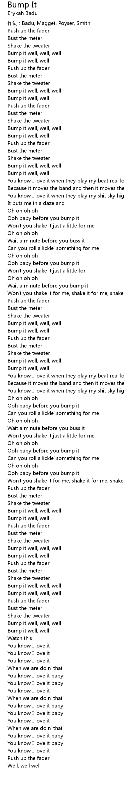 | 作词 : Badu, Magget, Poyser, Smith | |