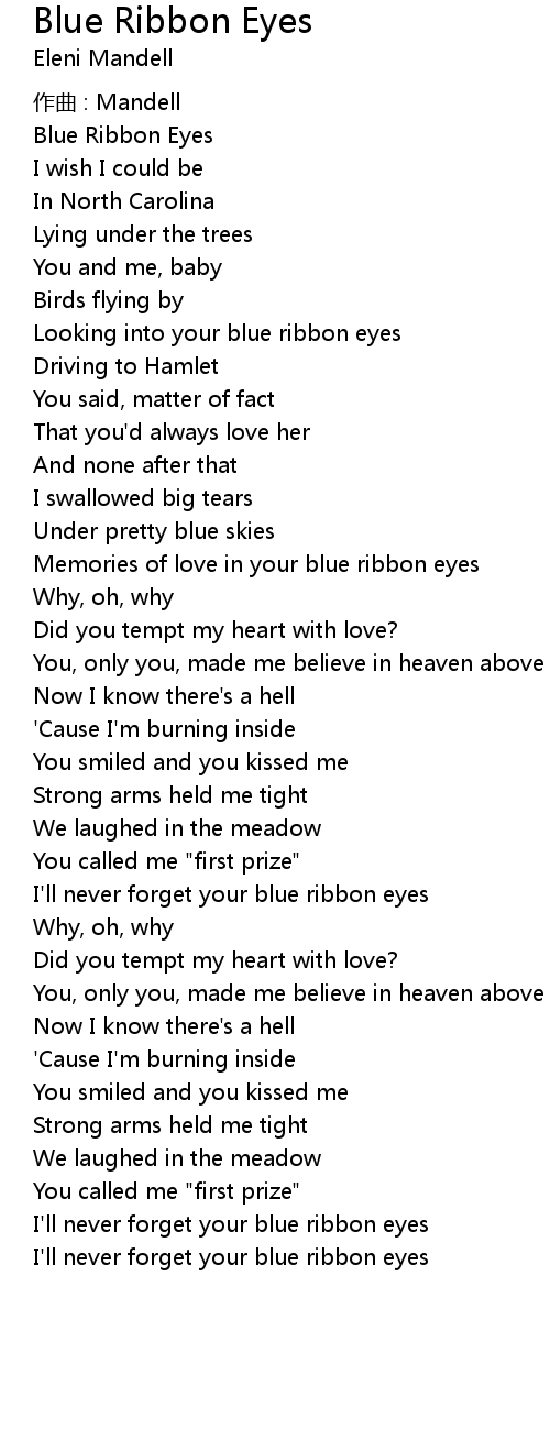 | I'll never forget your blue ribbon eyes | |