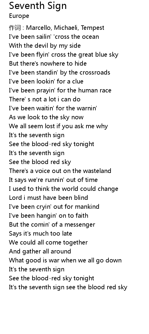 | It's the seventh sign see the blood red sky |