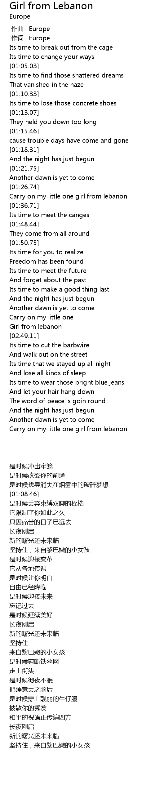 | [01:29.81] | Carry on my little one girl from lebanon |