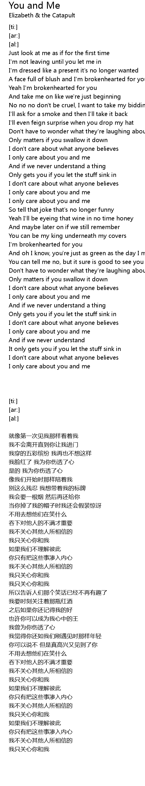 You and Me Lyrics