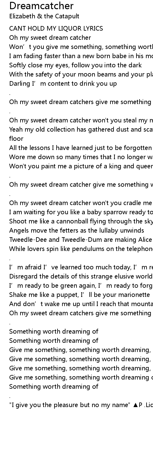 | [01:35.49] | Oh my sweet dream catcher give me something worth dreaming of. |