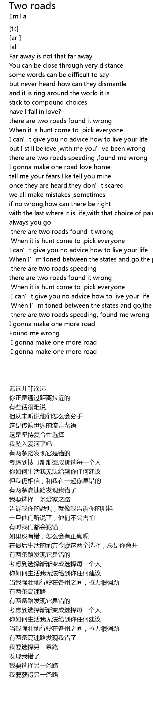 | [02:31.29] | there are two roads found it wrong |