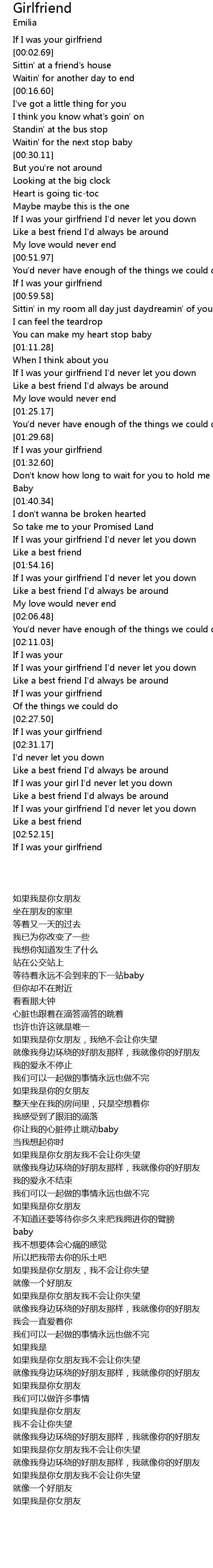 | [02:53.00] | If I was your girlfriend |