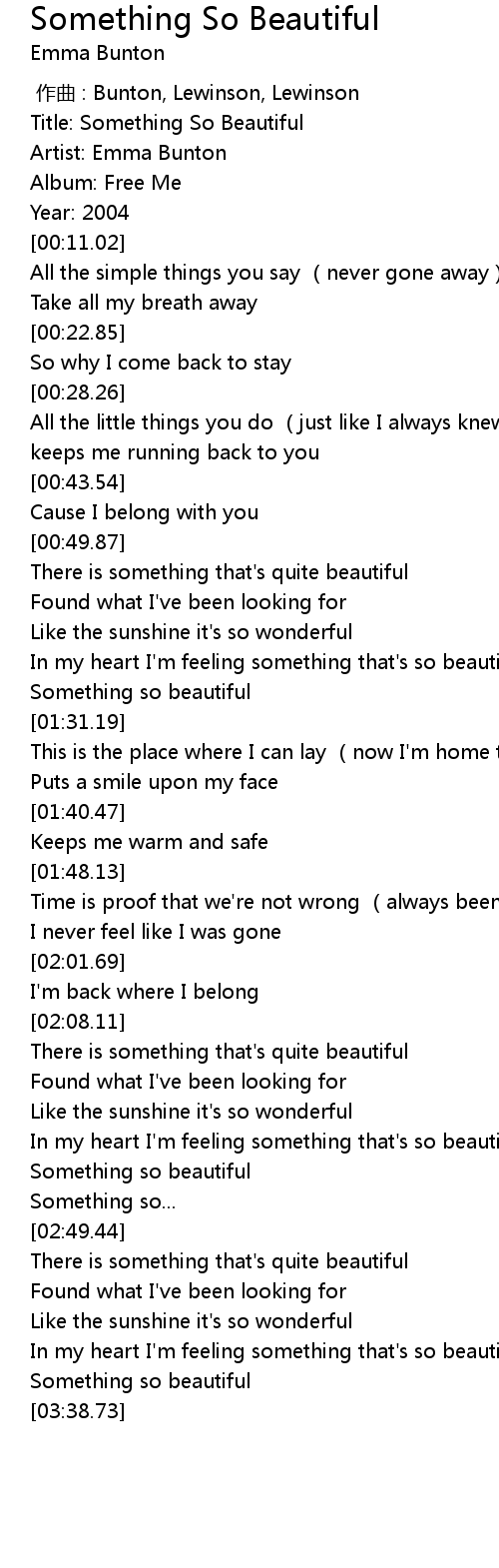 | [02:30.56] | In my heart I' m feeling something that' s so beautiful |