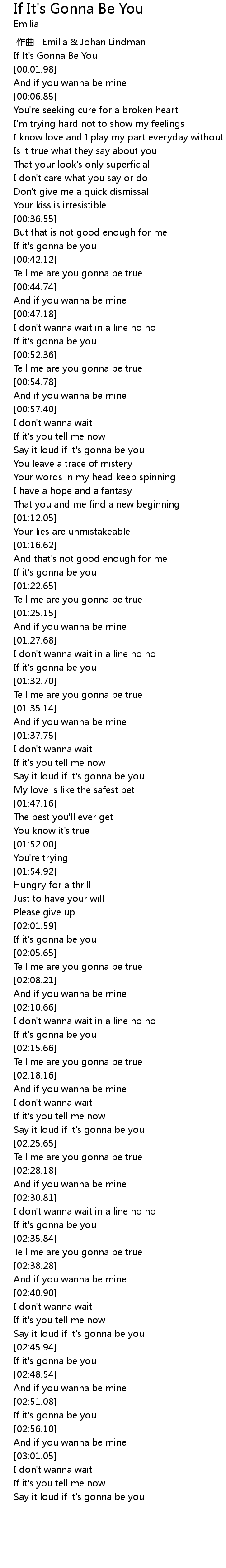 | [02:54.79] | If it's gonna be you |