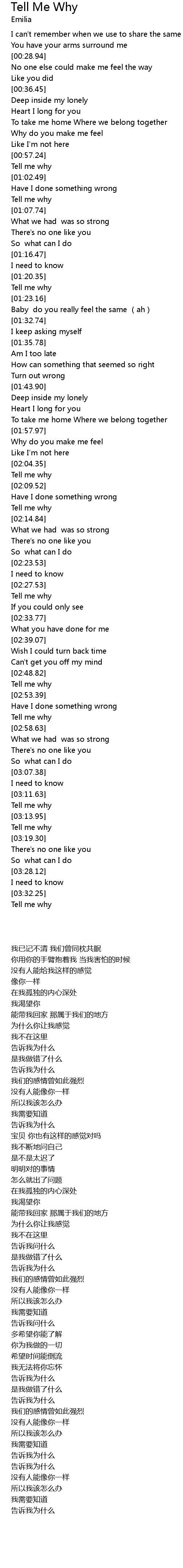 | [02:28.73] | Tell me why |