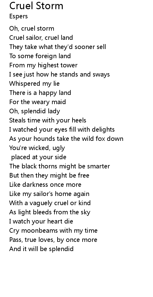 | Oh, cruel storm | |