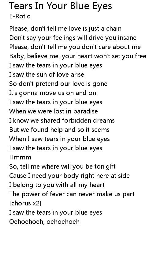 I saw the tears in your blue eyes |