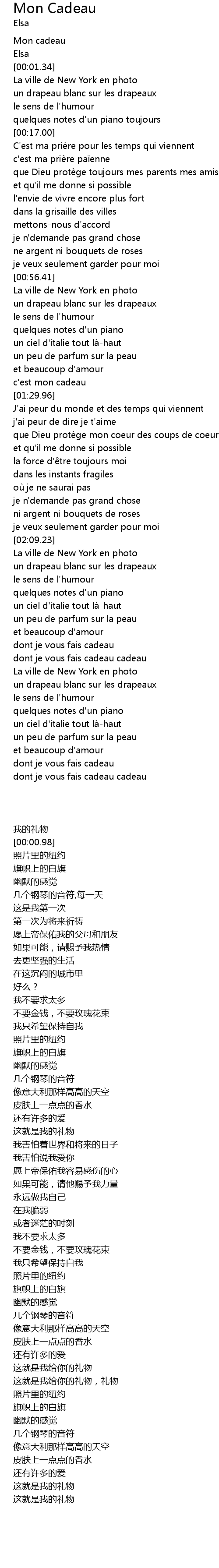 | [00:00.18] | Mon cadeau |