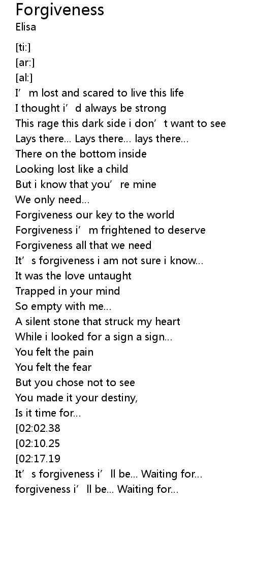 | [03:26.64] | forgiveness i' ll be... Waiting for |