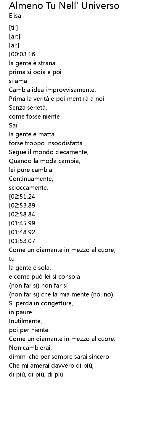 | [03:31.45][02:58.84][01:39.61] | almeno tu nell' universo |